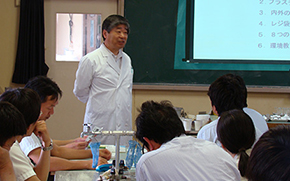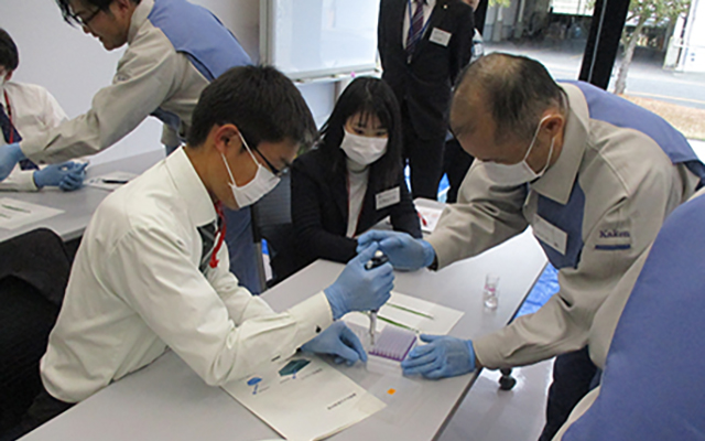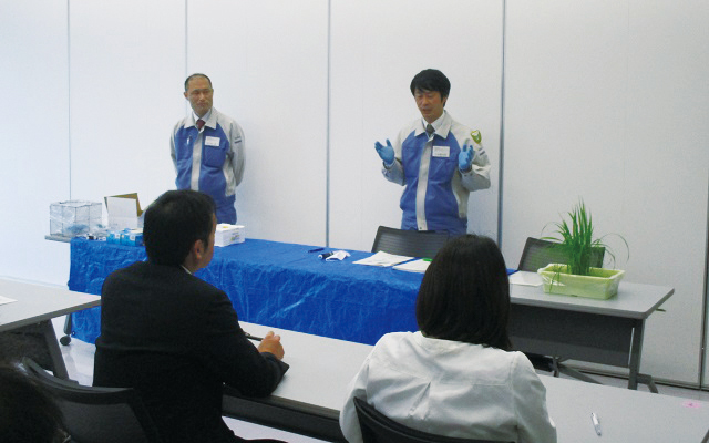 このような状況をふまえ、私たちは、教育のプロである「理科の先生」に対する支援活動として、実社会において理科が果たしている意義や役割などを、直接先生方に知っていただき、未来の日本を担う子どもたちに伝えていただきたいという思いから、『藤枝市理科教育支援プロジェクト』活動を静岡工場がある藤枝市をモデル地区として実施しており、当社が主体となって、静岡県藤枝市に工場を置く企業と協力しながら、中学校の理科の先生方へ産官学連携による次世代教育支援活動を2009年から継続して行っており、自治体、学校関係者の皆さまから高い評価をいただいています。