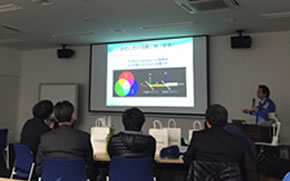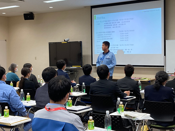2019年1月18日、第10回藤枝市理科教育交流会を当社静岡工場にて実施しました。今回も藤枝市立中学の理科の先生方だけでなく、藤枝市教育政策課、産業集積推進課、藤枝市内の企業からもご参加いただき、活気ある交流会となりました。当社からは、自動車用途を中心とした当社プラスチック製品の使われ方、SDGsおよび環境負荷低減に関する活動、ビオトープでの生物多様性を紹介しました。