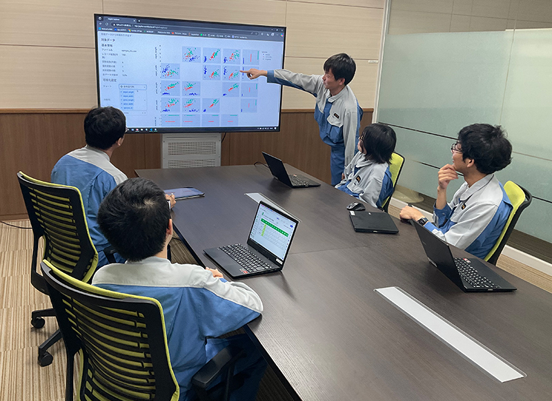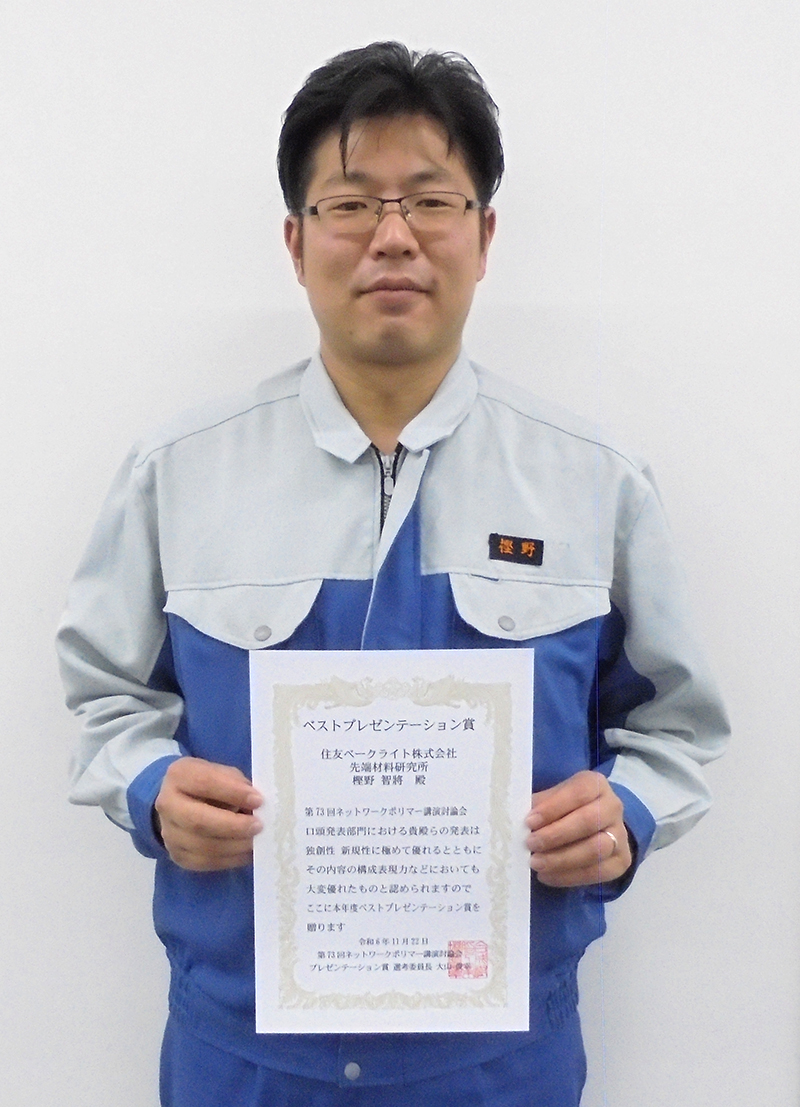 特筆すべき成果として、環境負荷低減が期待される次世代パワー半導体用封止材の開発において、研究者の知見とインフォマティクス技術を組み合わせることで、バイオ原料を使用しつつ、従来トレードオフ関係にあった熱伝導性と流動性の両立に成功しました。この取り組みである「バイオベース原料を用いた高熱伝導・絶縁性複合材料の開発」は、第73回ネットワークポリマー講演討論会(主催:合成樹脂工業協会)で発表され、ベストプレゼンテーション賞を受賞するという高い評価を得ています。