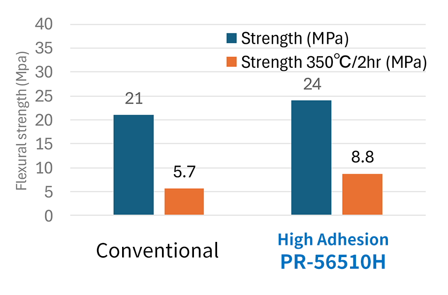 Improved heat resistance/moldability of the resin itself & Enhanced adhesion to inorganic materials are both expected to contribute to improved adhesion.