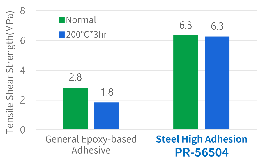 The strength reduction after a 200℃ heat history is minimal, indicating improved heat resistance.