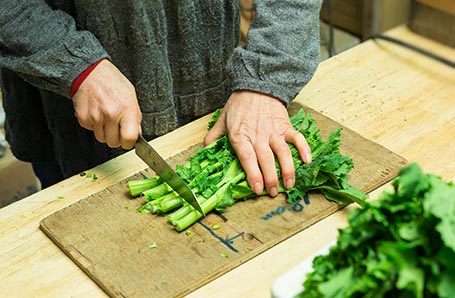 シーズン中、どんなときに注文しても、開花していたり、葉が黄化していたりすることのない「ジョイファーム小田原」の「菜の花」は、収穫時間の指示、作業場の温度設定、充分な予冷といった厳しい管理体制と、生産者たちのそんな消費者本位の心遣いによって支えられているのです。