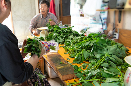 モロヘイヤの栄養価は、カロチン、カルシウムの含有量が野菜の中でトップクラス。ビタミンB、C、Eも豊富に含まれています。さらにモロヘイヤをはじめ山芋やオクラなどネバネバした食材に含まれる成分は、血糖値やコレステロールの上昇を抑制し、細胞と細胞をつなぐ保水力を持ち、胃の粘膜を保護します。また、ケルセチアンという成分には強い抗酸化作用があると言われています。空前の健康ブームを背景に、『医食同源』と呼ばれる「日頃からバランスの取れた美味しい食事をとることで病気を予防し、体調を整える」という考え方が一般的になり、モロヘイヤの出荷量も、どんどん延びて、今では40軒の生産者が、千葉、横浜、東京都内のスーパー及び地元の市場、岩手の生協にも出荷しているのだそうです。