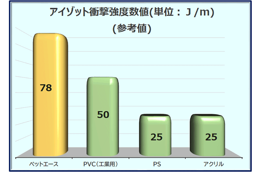 アクリルに比べ約4~5倍に相当する強度を兼ね備えています。