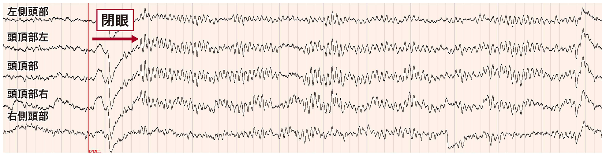 当社デバイスで測定した閉眼時α波(10Hz時程度の脳波)
