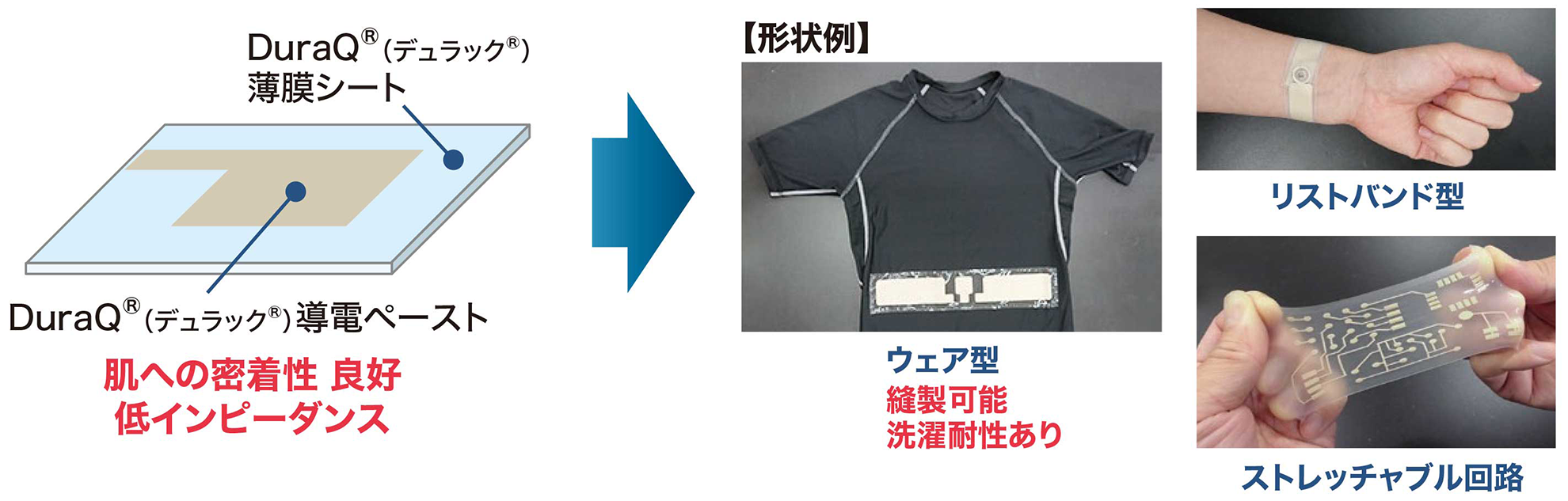 シリコーンゴム本来の特長に高強度をプラスした高引裂きシリコーン 導電性付与により柔軟で伸縮可能な電極・配線材料もラインナップ