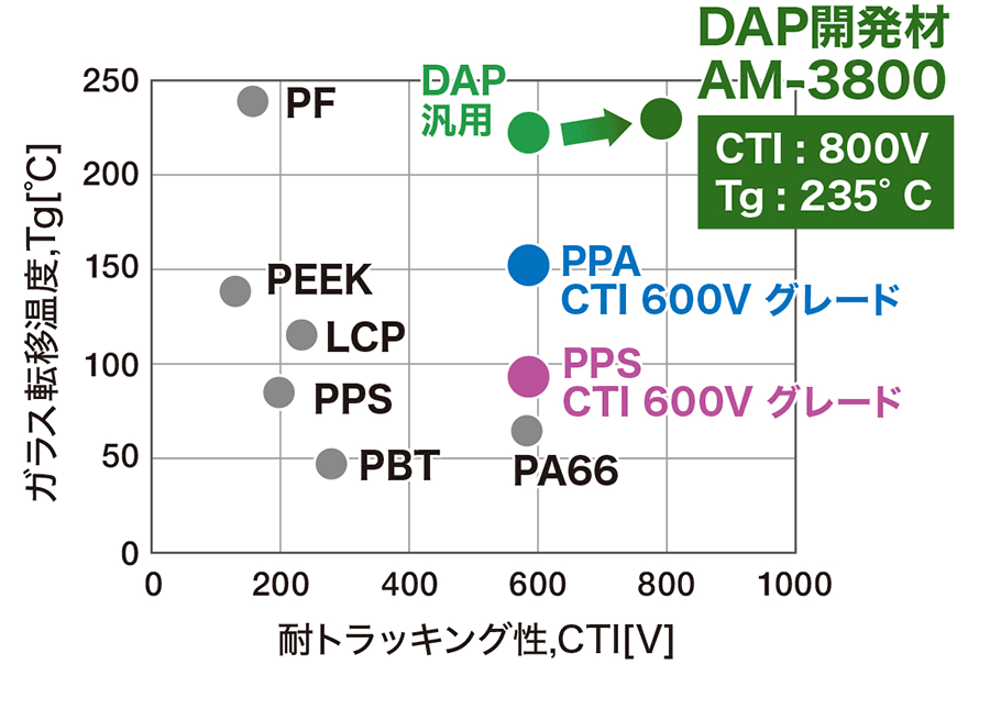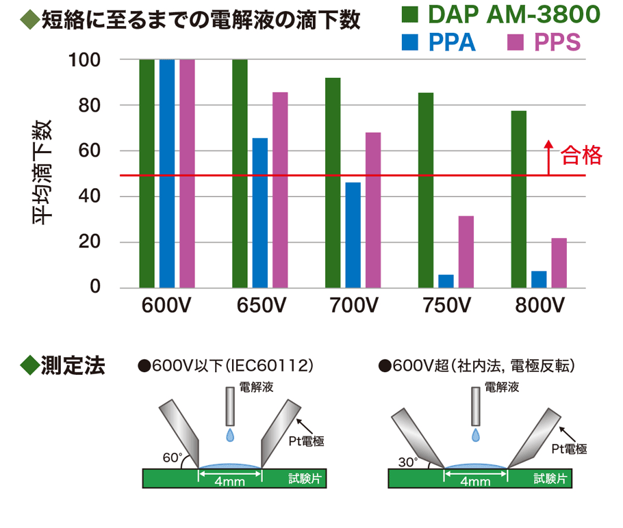 | 耐トラッキング性(800V) | ◎ | △ | △ |